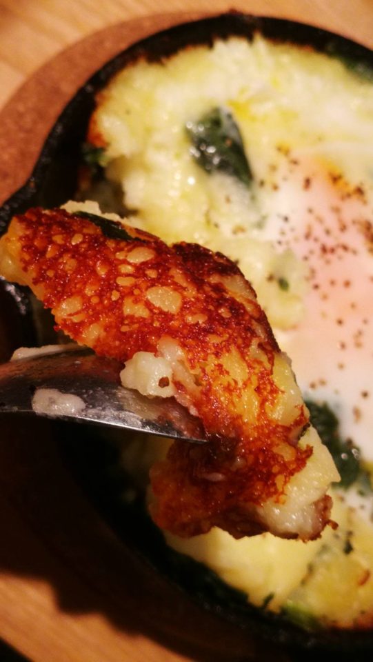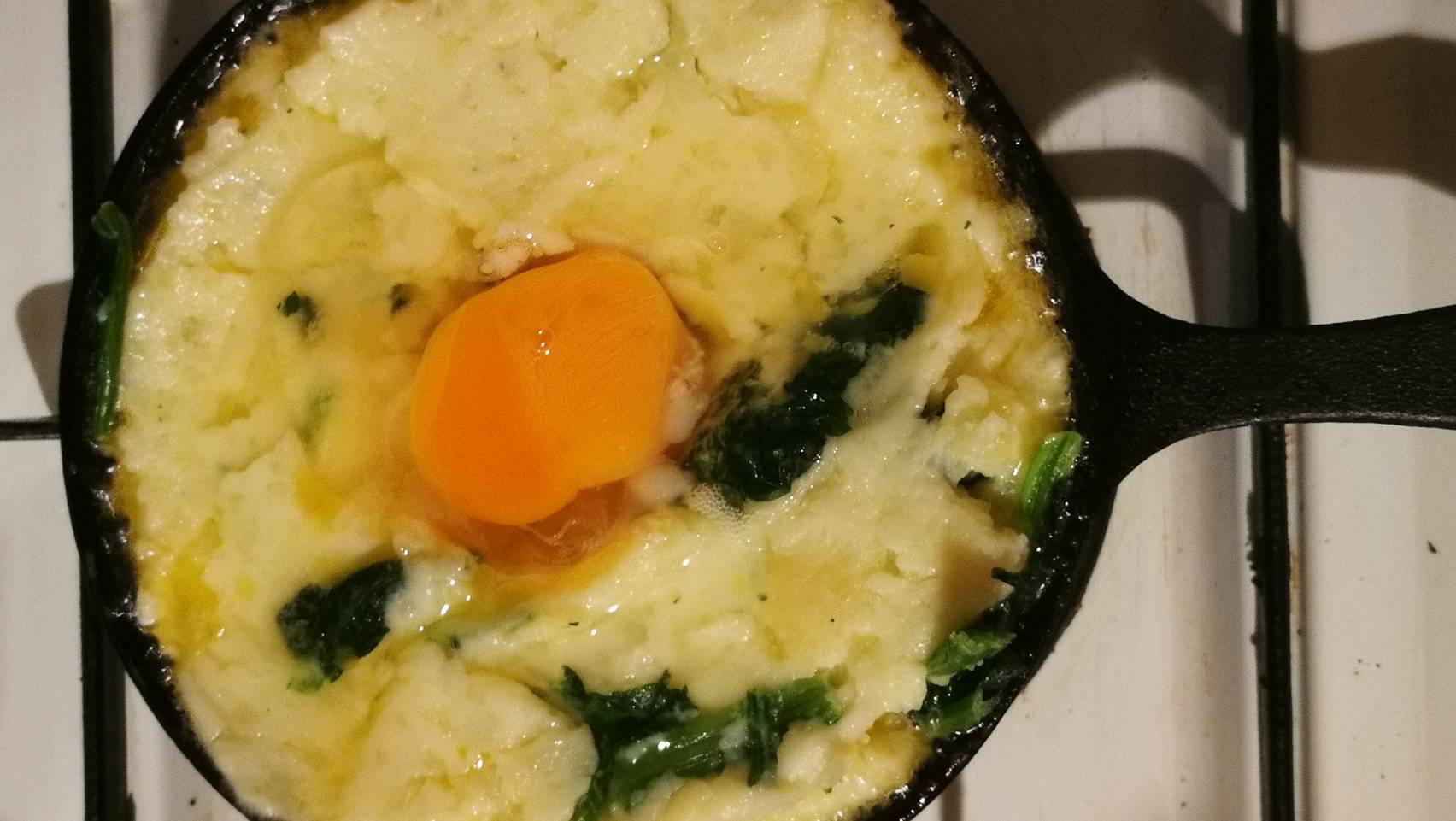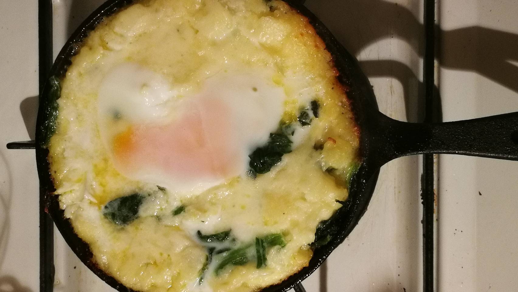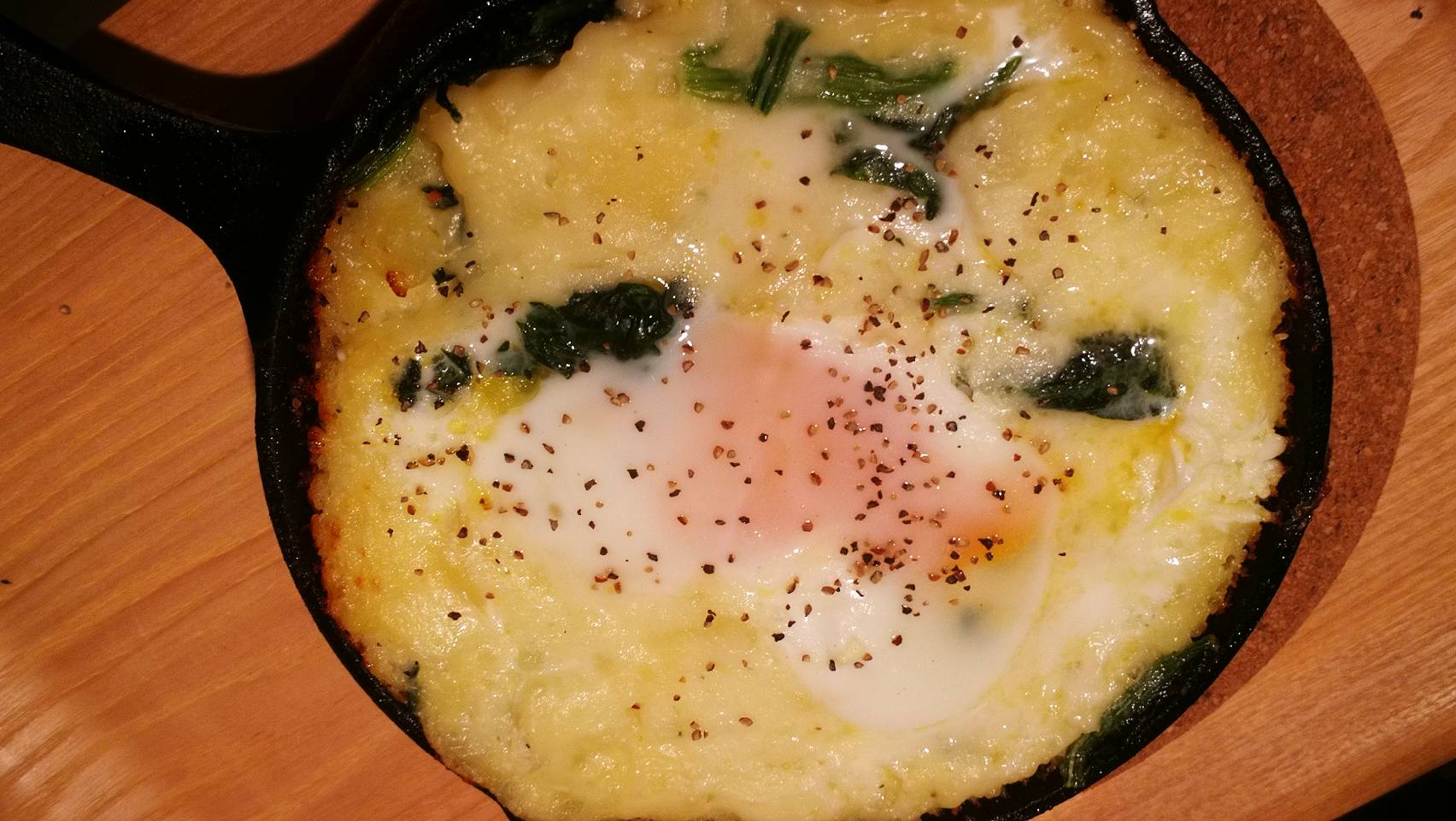 そんなわけで、本来なら透明の瓶で作るエッグスラットを今日はスキレットで!ついでに少しだけ栄養のことも考えて、ほうれん草も投入してあります( *`艸´)